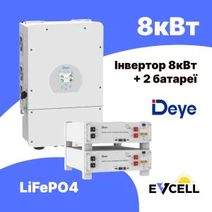 Комплект резервного живлення Deye 8 кВт інвертор + 2 акумулятори Deye SE-G5.1 Pro-B LiFePO4