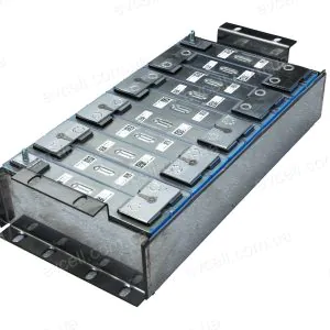 Це комлект 2-х модулів 10S які можна зʼєднати послідовно різними способами. Корпус з нержавіючої сталі (2мм) висотою 92,5мм, виведена силова шина – шпилька М6. Акумуляторні модулі нашого виробництва на нових елементах SAMSUNG SDI на 70Ah. Ці елементи по характеристиках аналог елементів LG Chem LGX E66A, LGX E61V, LGX E72B, LGX E71A, SK Innovation E600B, HBD…