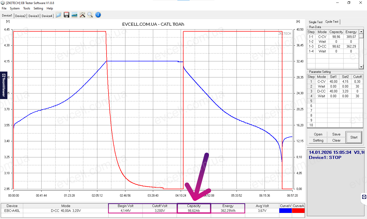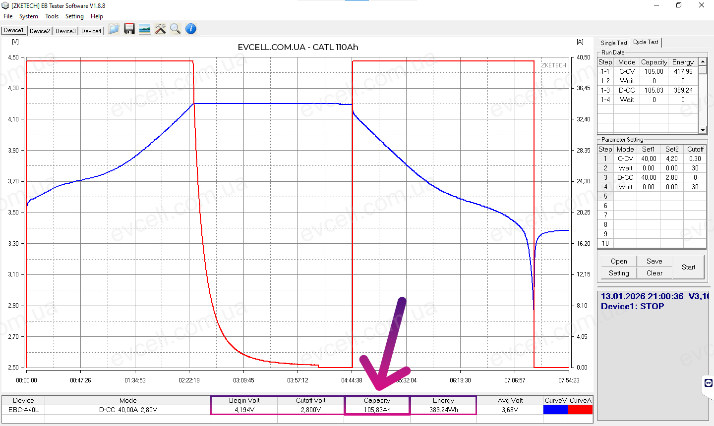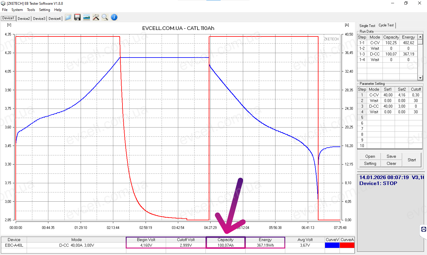 • Діапазон 4.16v – 3.0v: 100.07Ah