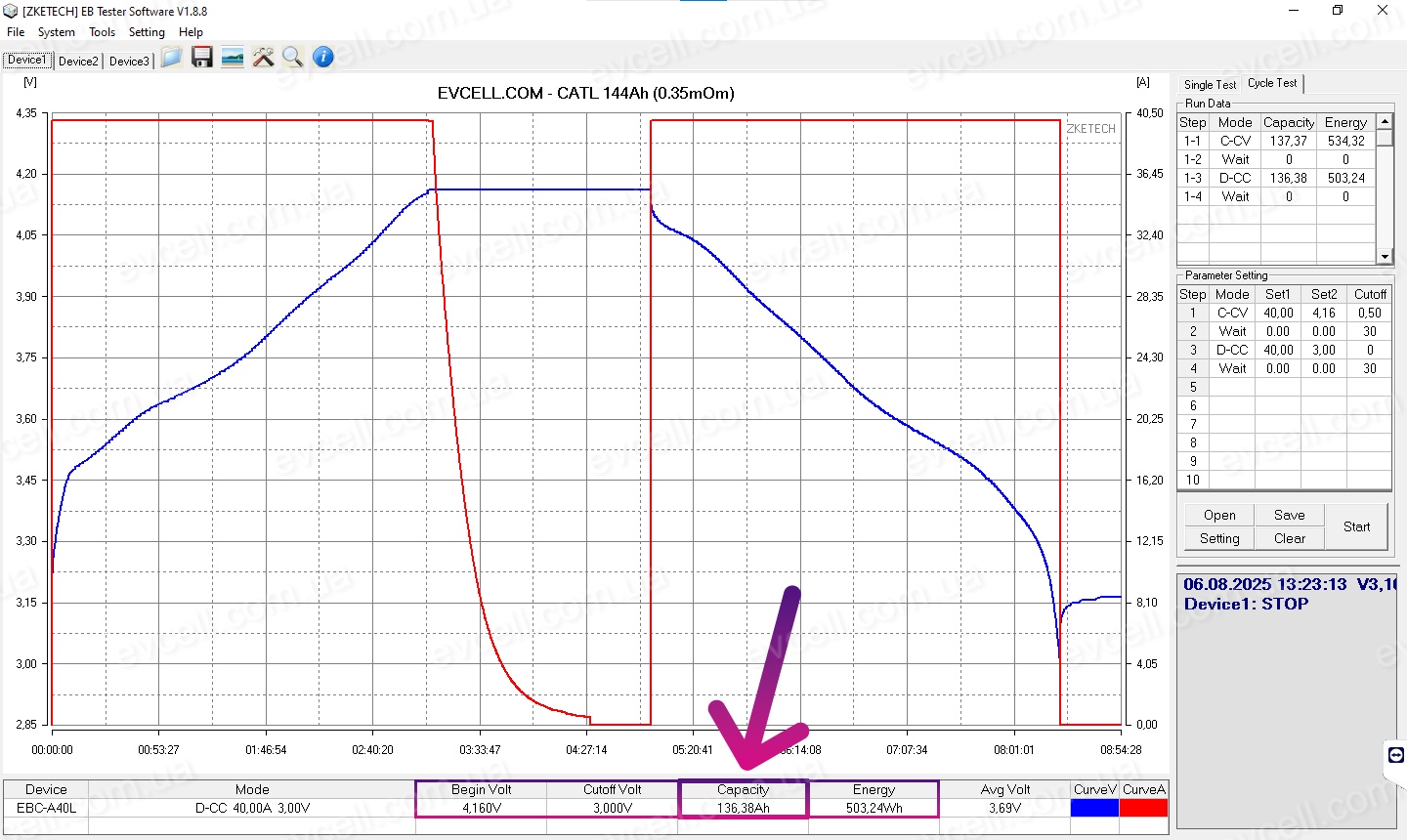 • Діапазон 4.2v – 2.75v: 139.86Ah