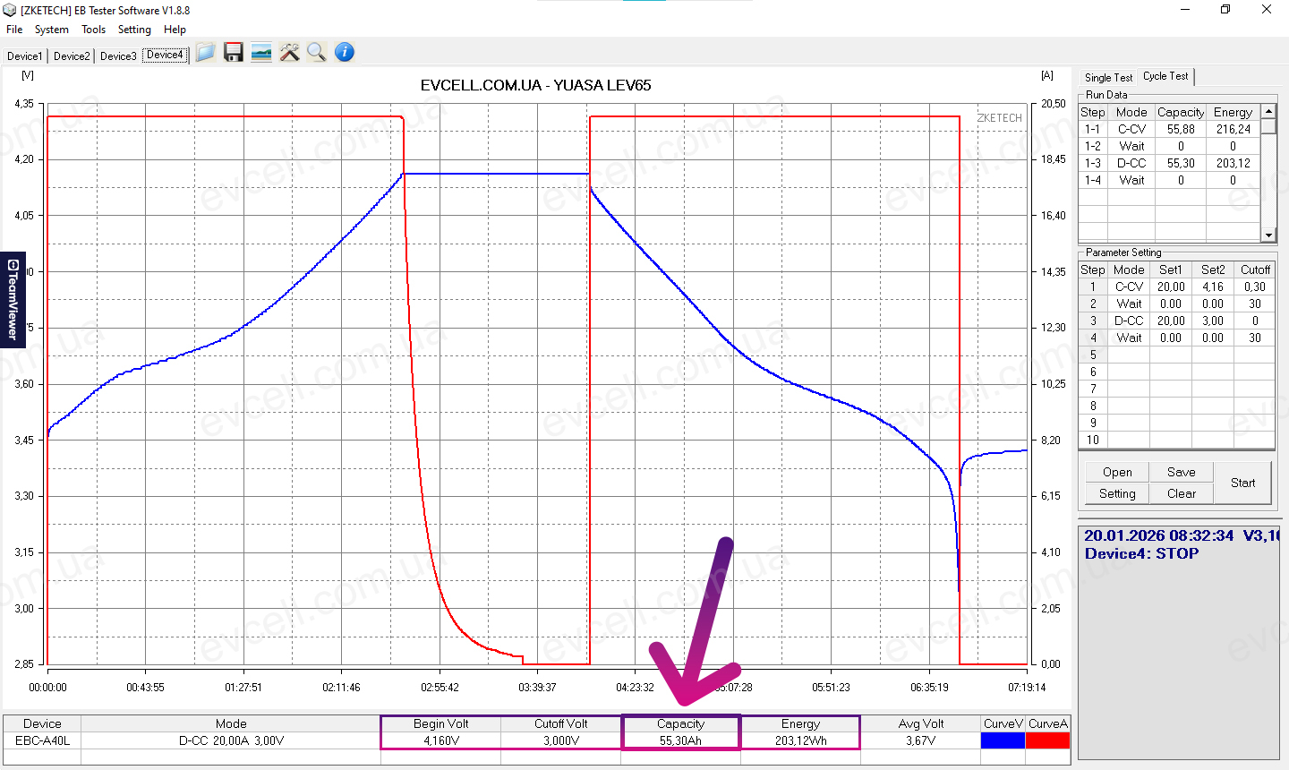 • Діапазон 4.16v – 3.0v: 55.3Ah