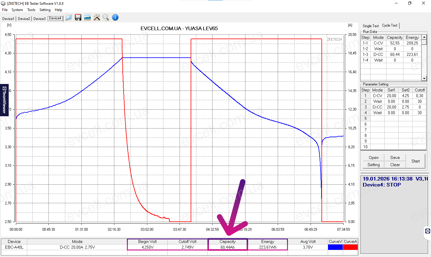 • Діапазон 4.25v – 2.75v: 60.44Ah