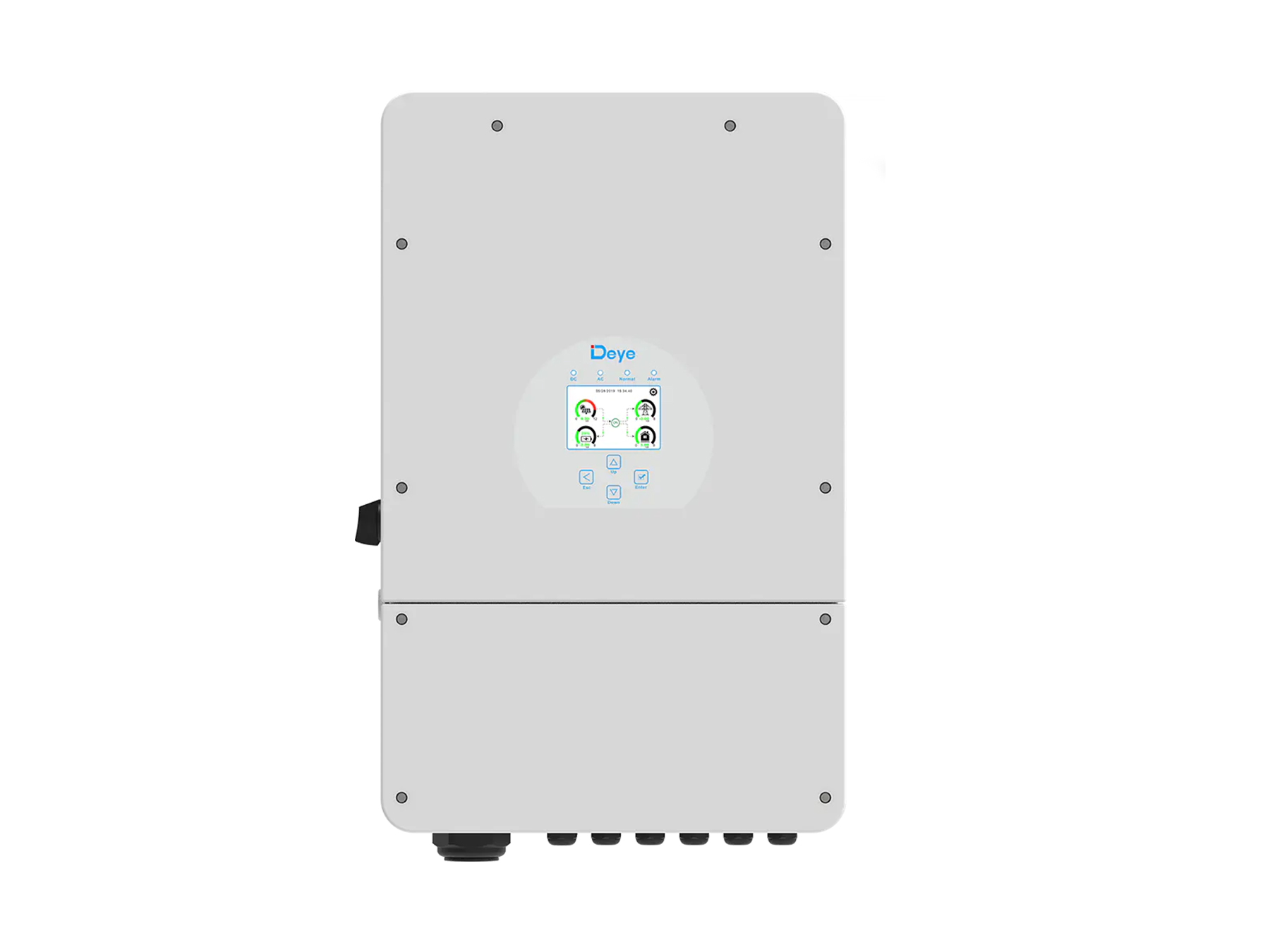 Інвертор має потужність 12 кВт та призначений для однофазних систем електропостачання приватних будинків, багатоквартирних об’єктів і комерційних приміщень. Пристрій поєднує функції мережевого, автономного та гібридного інвертора, забезпечуючи стабільну роботу системи навіть при перебоях у електромережі. Інвертор оснащений потужним сонячним контролером з кількома MPPT-трекерами, що дозволяє ефективно використовувати сонячну енергію з різних масивів панелей. Підтримка акумуляторів низької напруги забезпечує накопичення енергії для резервного живлення та оптимізації власного споживання.