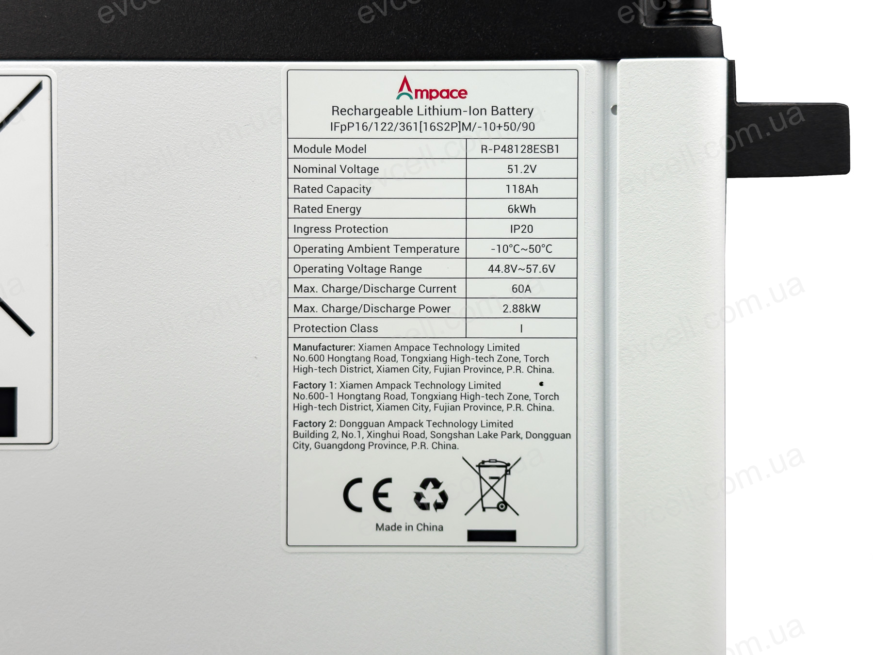 Акумулятор для систем 48V – Ampace 6kWh, 118Ah LiFePo4